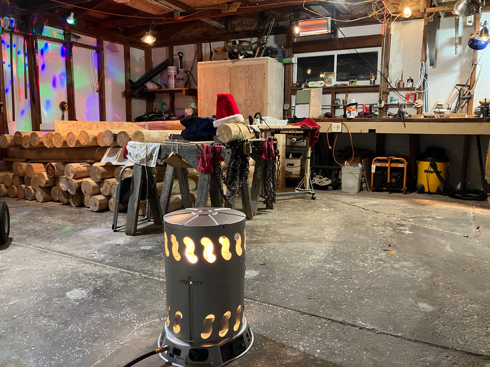 This project features a workshop setting with stacked logs, colorful lights, and a cozy atmosphere. The images capture the warmth and creativity of the workshop environment.